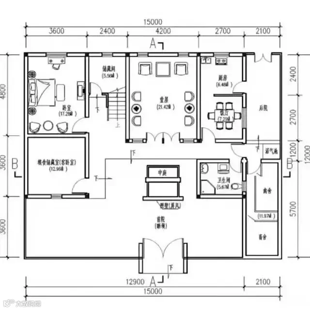 占地:开间15米,进深12米