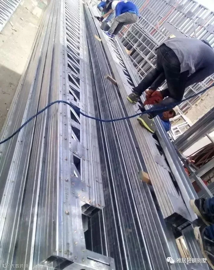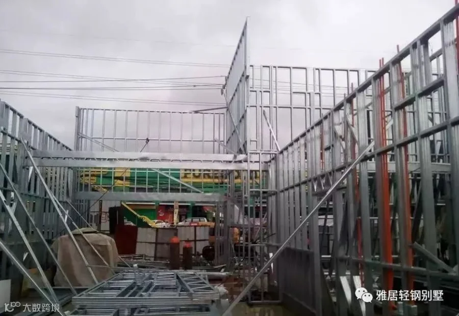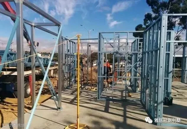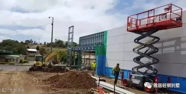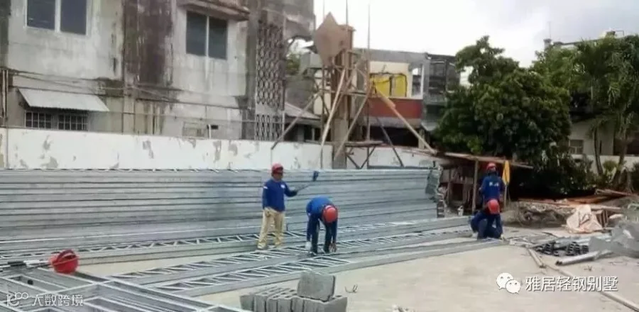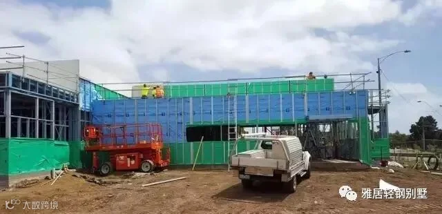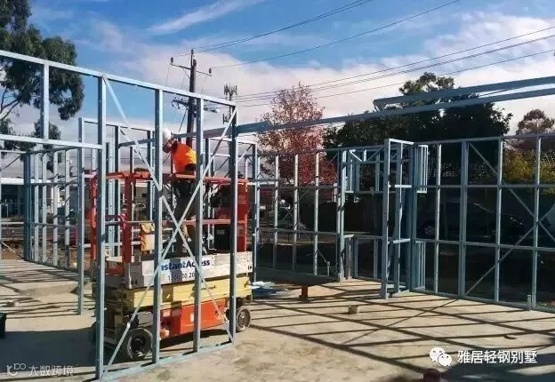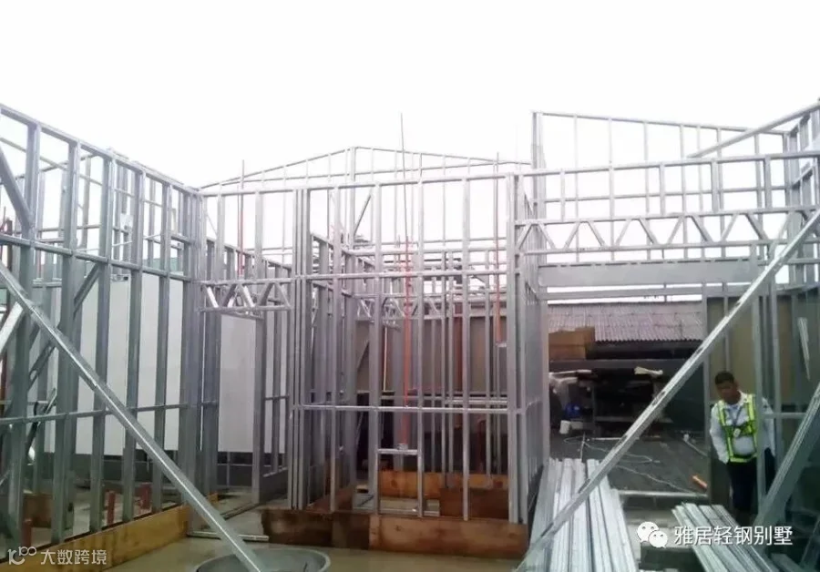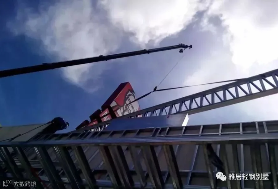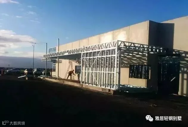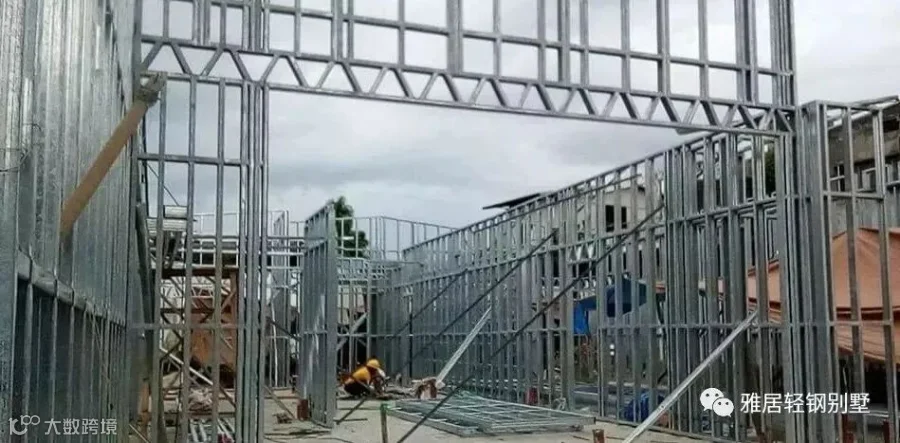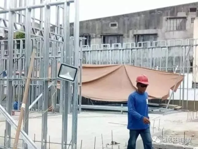 注意,墙体上方,和城墙一样,做了垛口,每个凹槽对应桁架梁的位置。充分发挥了轻钢体系自动化程度高,易加工的优势,现场无需放线对位。
