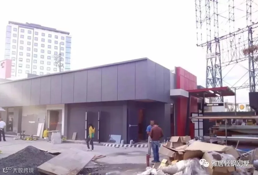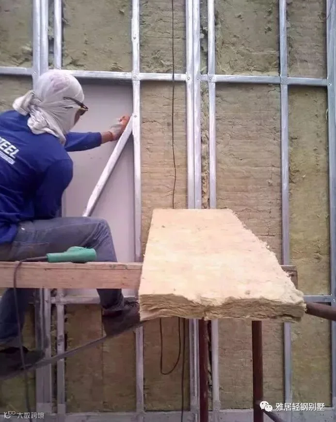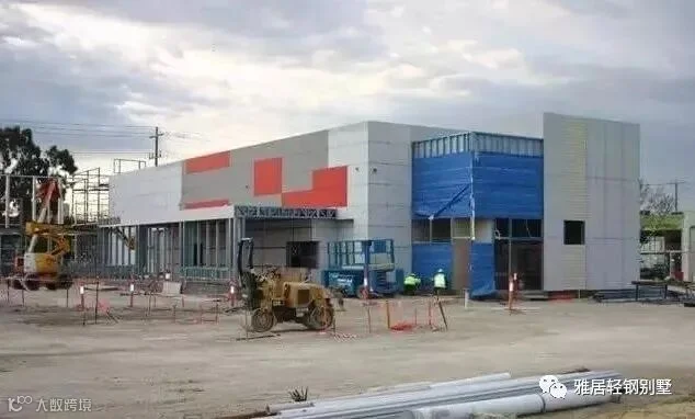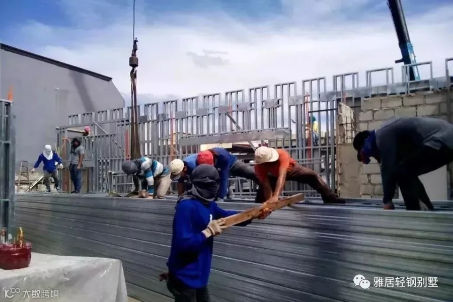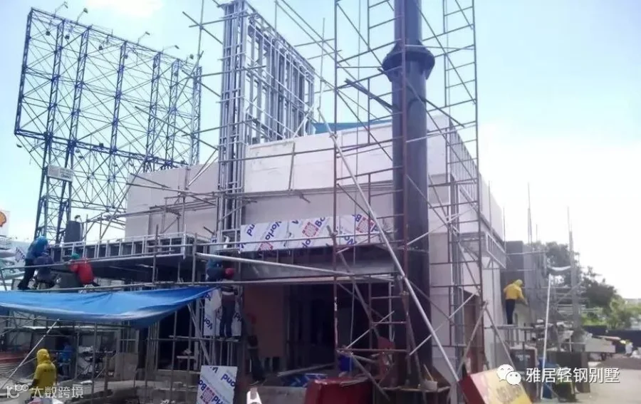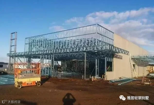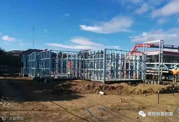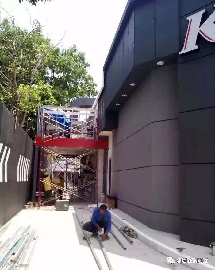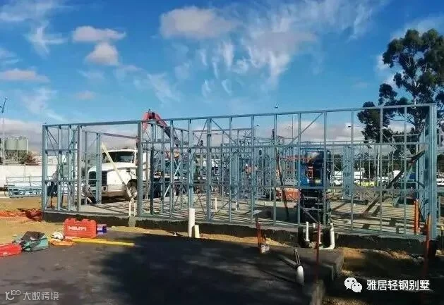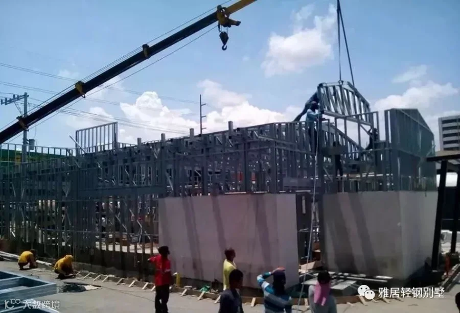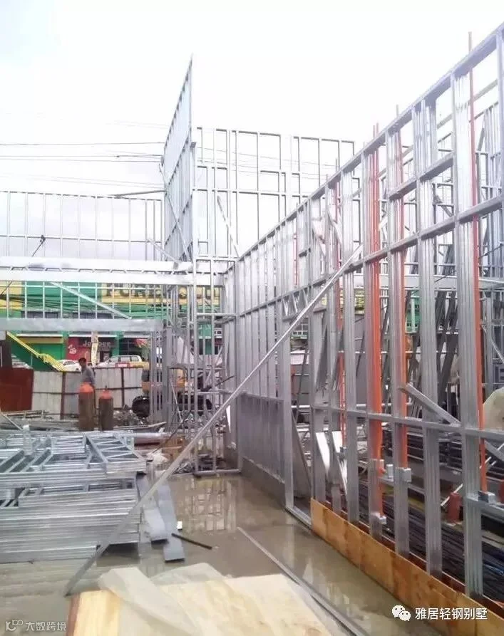 注意,墙体上方,和城墙一样,做了垛口,每个凹槽对应桁架梁的位置。充分发挥了轻钢体系自动化程度高,易加工的优势,现场无需放线对位。