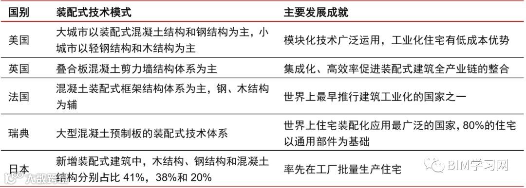 1)已在发达国家的产业路径中得到印证。从成熟发达国家的产业路径来看,装配式 混凝土结构和钢结构是被使用最广泛的两种装配式建造模式。美国以装配式混凝土结构和 钢结构为主,英国、瑞典等欧洲国家以装配式混凝土结构为主,钢结构和木结构为辅。