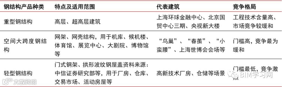 目前国内钢结构行业市场化程度高,行业集中度低,同质化竞争严重。根据工艺和用途,钢结构行业又可分为轻钢结构、多高层钢结构、空间钢结构三个子行业。以厂房为代表的轻钢领域,应用广泛,技术相对成熟,进入壁垒相对较低,市场分散且竞争最为激烈;多高层钢结构领域,由于钢结构工程技术含量高,制作安装难度较大,产品质量及精度要求高,竞争较轻钢市场缓和;而空间结构主要运用于大型体育场馆、剧院、机场、火车站等大跨度公共建筑,对资金资质、产品质量和精度有着严格要求,进入门槛高,在三者中竞争最为和缓。