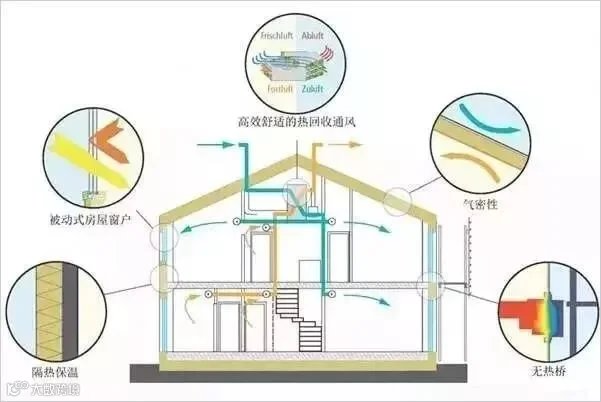 通过采用先进节能的设计理念和施工技术,极大限度地提高建筑的保温、隔热和气密性能,并通过新风系统的高效热(冷)回收装置将室内废气中的热(冷)量回收利用,从而显著降低建筑的采暖和制冷需求。