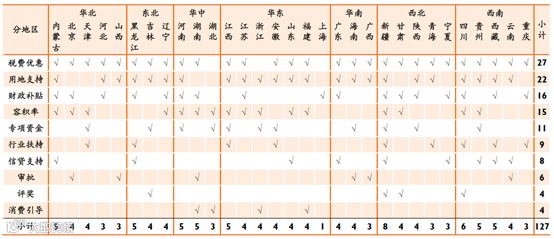 目前,全国31个省份均发布了相关的激励政策,新疆的激励政策类型最多(8项),其次是四川省(6项)。全国政策激励平均为4项,其中激励政策条款数量靠前的省份依次是新疆、四川、黑龙江、河南、湖南、内蒙古、江西、贵州、西藏等。