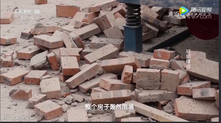在震动台一晃动的瞬间,整体结构已经开裂,不到十五秒钟的时间,整个房子轰然倒塌碎了一地,甚至地基都已裂开。