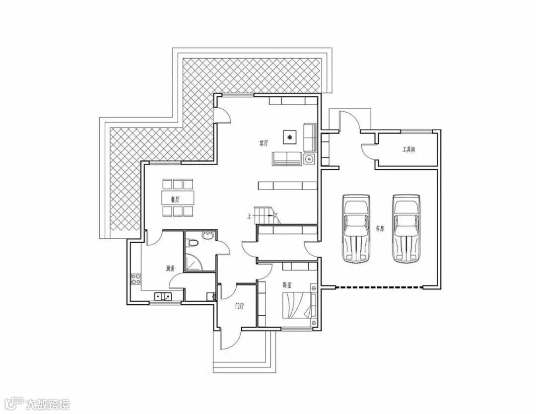 一层:门厅、客厅、餐厅、厨房、卧室、卫生间、储藏室、车库、工具间;