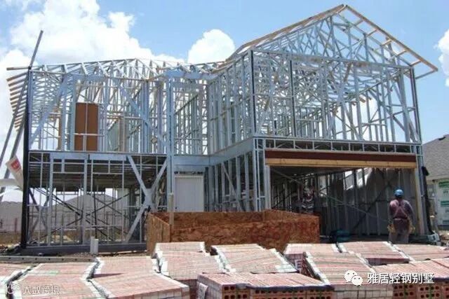抗震:低层别墅的屋顶大多是斜屋顶(坡屋面),所以屋顶结构基本上是一个由冷弯型钢构件构成的三角形屋顶桁架体系。轻钢构件在密封了结构板和石膏板后,形成了很强的“板肋结构体系”,具有较强的抗震和抵抗水平荷载性能。水平荷载的能力适用于抗震强度大于8度以上的区域。