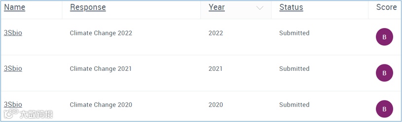 CDP 气候变化评级连续三年维持在B级,超过中国大陆72%公开披露CDP评级的企业