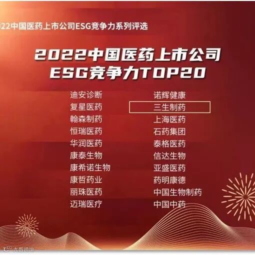 “2022中国医药上市公司ESG竞争力TOP20”