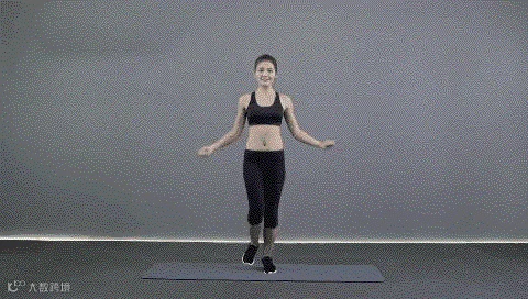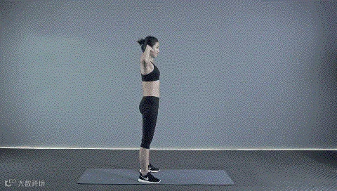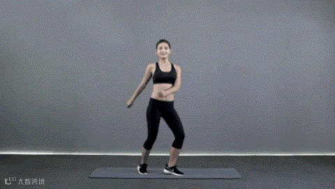 动作要点:挺胸收腹,身体保持放松,跳跃落地时膝关节保持自然微屈。此动作练习8x8拍。