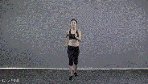 动作要点:挺胸收腹,腰背平直,有短暂腾空,手臂自然摆动,脚尖着地。此动作练习8x8拍。