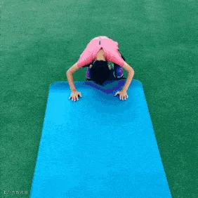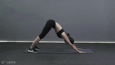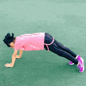 动作要点:俯身成倒V字型并缓缓向前呈俯卧撑起始姿态,腹部持续紧张,支撑时手臂保持自然伸直。