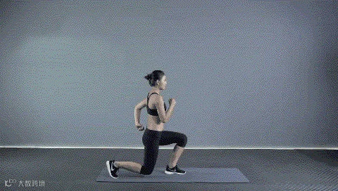 动作要点:挺胸收腹,垂直缓慢下蹲,控制前腿膝盖和后脚尖方向,此动作反复进行10-15次,完成后换另一侧继续。此动作练习4x8拍。
