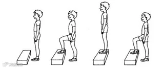 练习时可以让同伴用节拍器或声音提示你。因此,你需要找一个家人,他将帮助你保持适当的踏跳节奏。节奏为每分钟踏30次(上下),每次3-5分钟。2秒钟上、下各踏一次(也就是说,把节拍器设置为每分钟120拍,每响一下踏一次)。在练习时左右腿轮换做,每次上下台阶后上体和双腿必须伸直,不能屈膝。