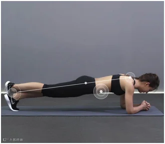 动作要点:腹部持续紧张,躯干和腿部始终保持在同一直线,保持下巴与颈部夹角不变。