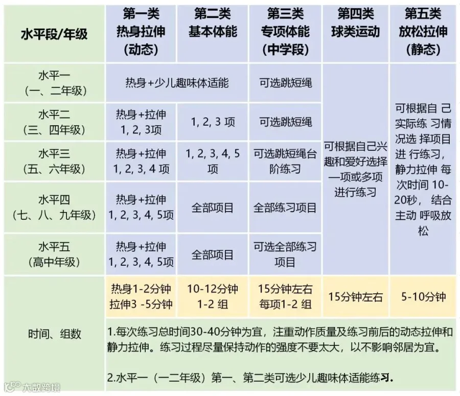 暑假来了。虽然没有常规的体育课,但仍应该在假期重视体育锻炼,加强身体素质。那么,每个阶段的孩子对应的适合做哪些体育运动呢?一套详细的暑期中小学各阶段体育锻炼指南,送给你~