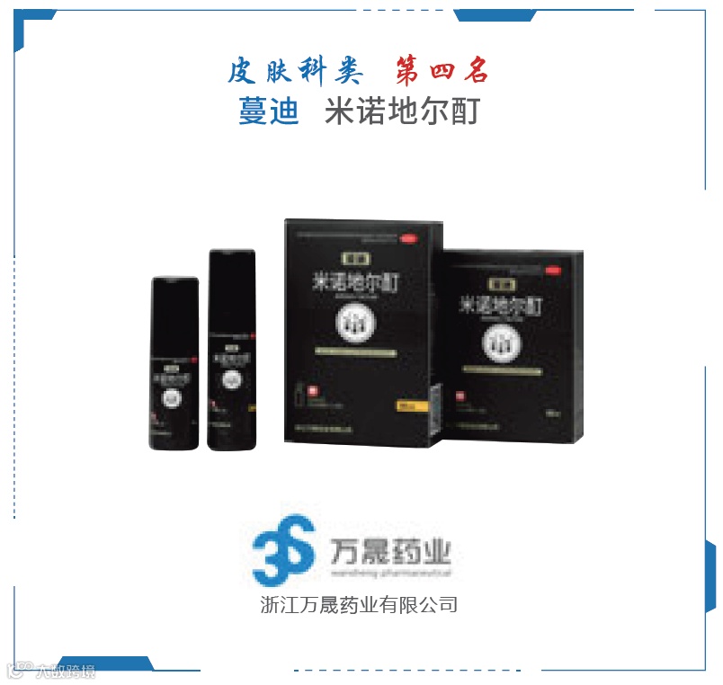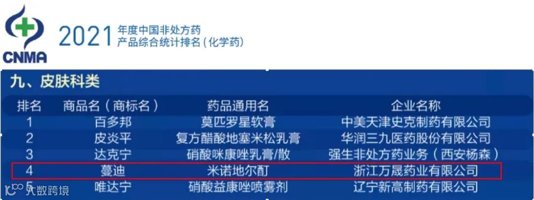 三生制药旗下产品蔓迪在2021年度中国非处方药产品综合统计(化学药)“皮肤科类”排名中名列第4位,较去年上升2个席位。
