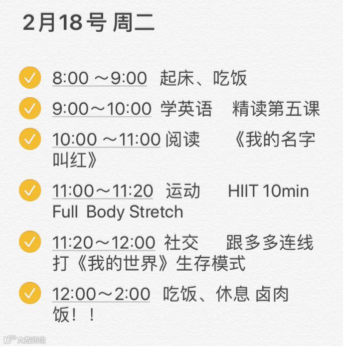 比如上图:9:00~10:00是学英语。后面说了是精读的第5课,计划到具体学什么。