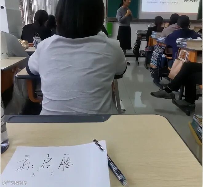 家长会,每个孩子的桌上都留了一个名字以便家长找座位。看到后想哭,突然觉得考没考第一没那么重要了,被他的用心暖到。