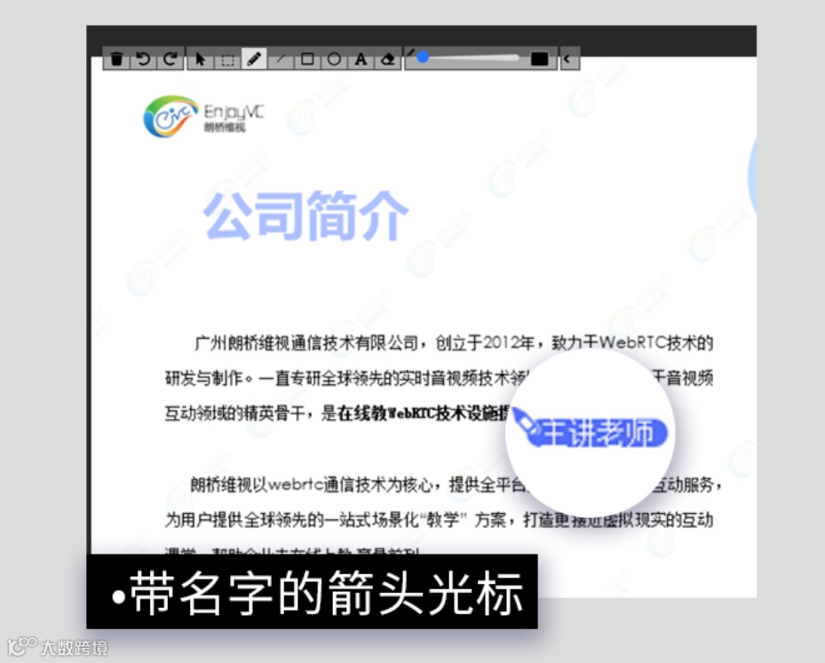 我们还在白板上增加了箭头光标功能。老师在上课过程中,使用任何白板工具,学生端都会显示老师的箭头光标,能够更好地帮学生定位老师的讲课内容。