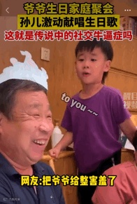 一个男孩子在爷爷的生日宴上,不等爸妈张嘴,自己就上前“深情”地演唱了一首《生日快乐歌》,听得爷爷竟还有点害羞了。