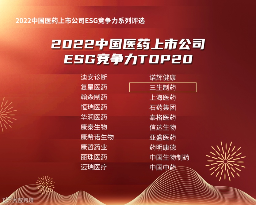近日,由E药经理人和商道咨询联合主办的2022年“中国医药上市公司ESG竞争力与ESG投资价值榜单” 正式发布。三生制药荣膺“2022中国医药上市公司ESG竞争力TOP20”殊荣。