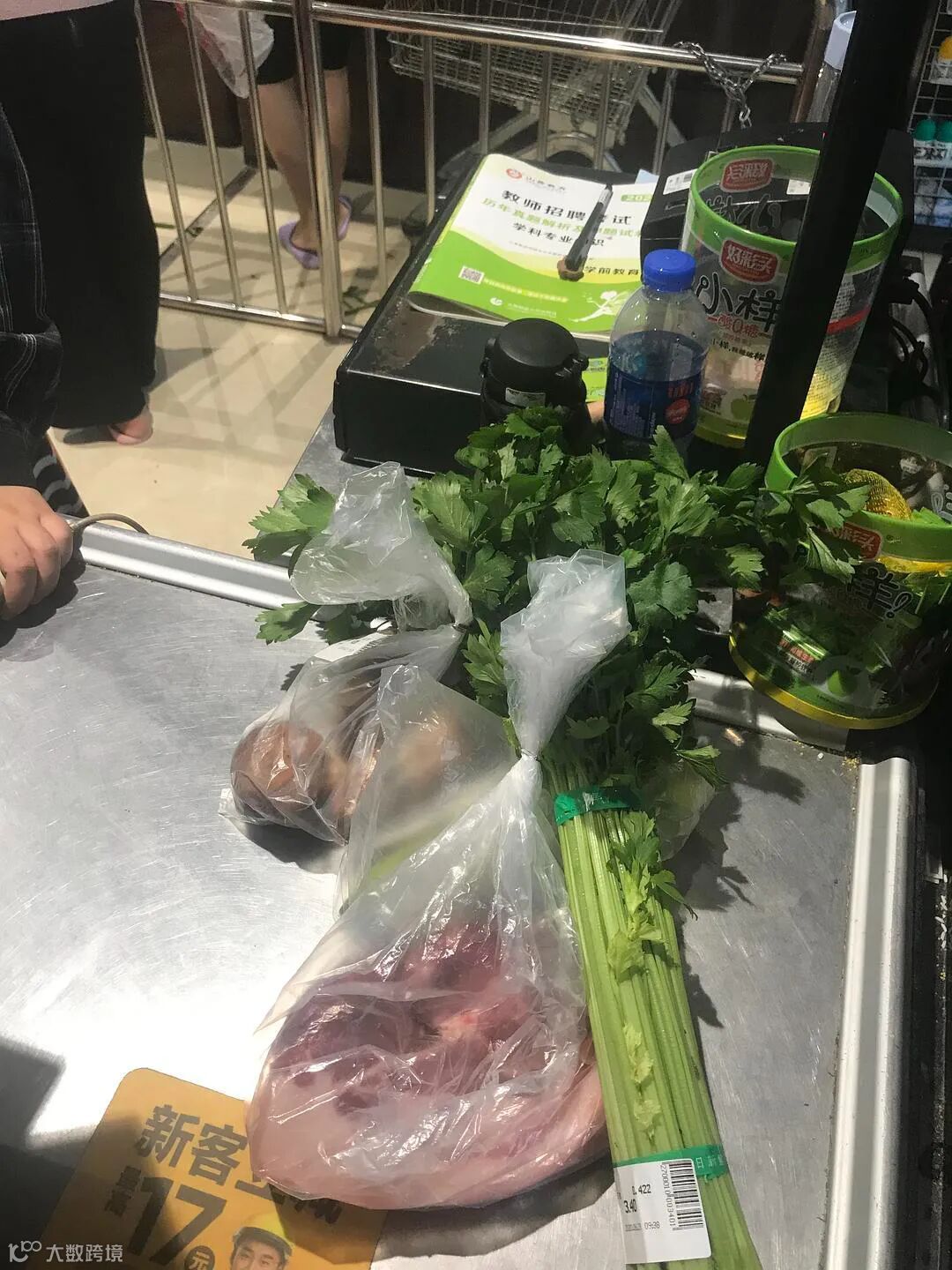 去超市买菜时看到收银机上放的书。
