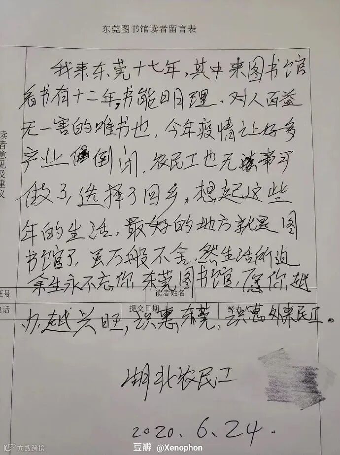 一份曾经刷屏的留言。
