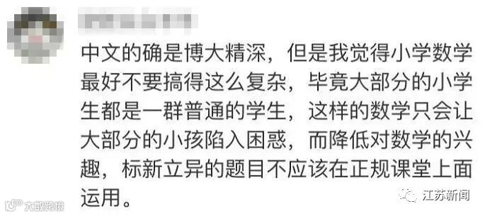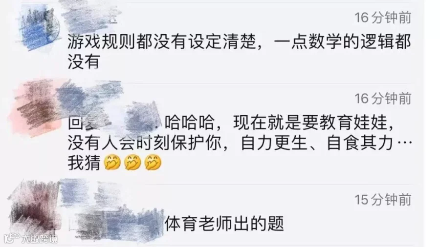 并且提出这种有争议的题目不应该有标准答案,“填‘2’的孩子错了,那孩子就不可能满分,填‘3’的孩子对了,但他并未真正的理解题目和游戏”,“这样的题目和教育是否有意义”……