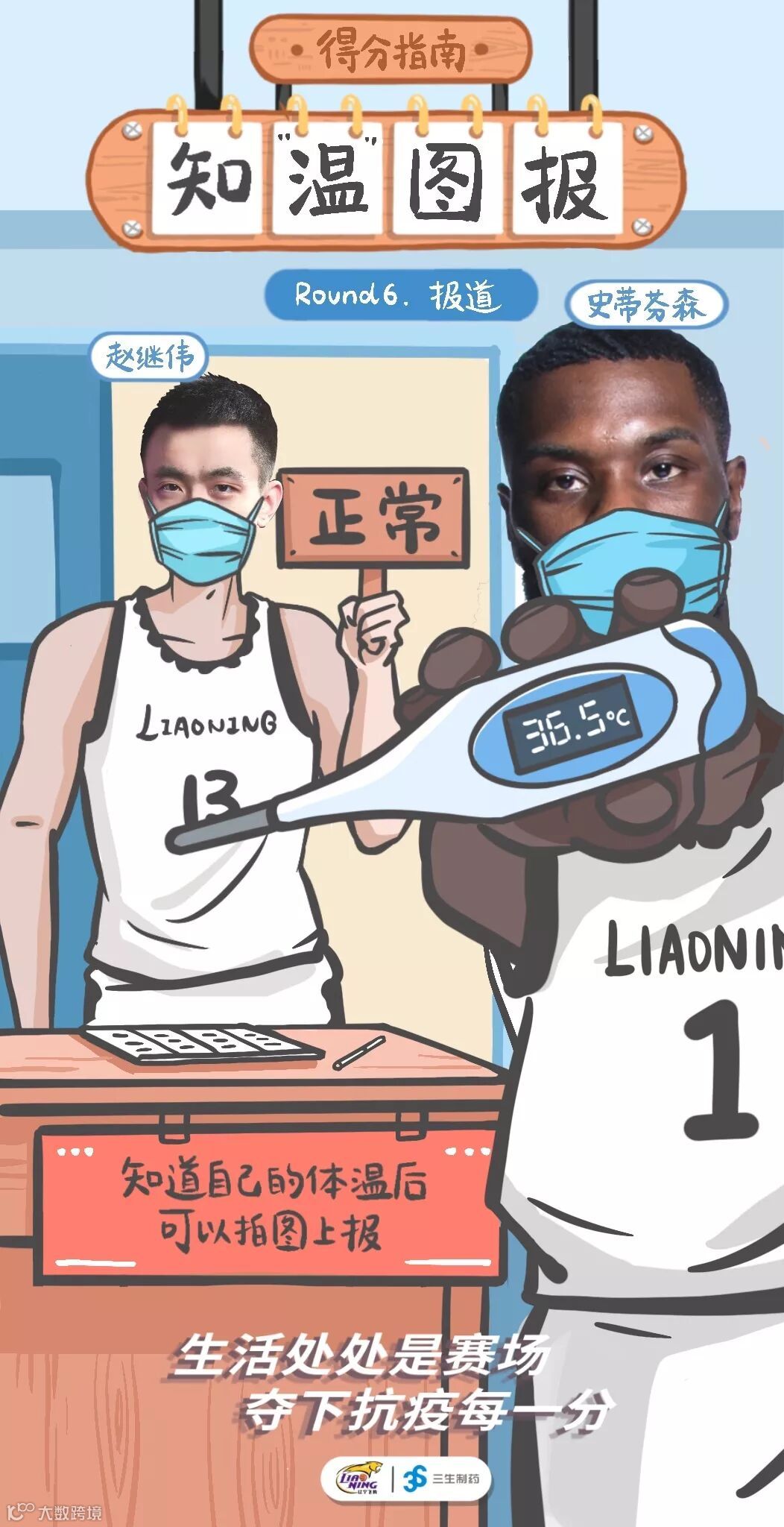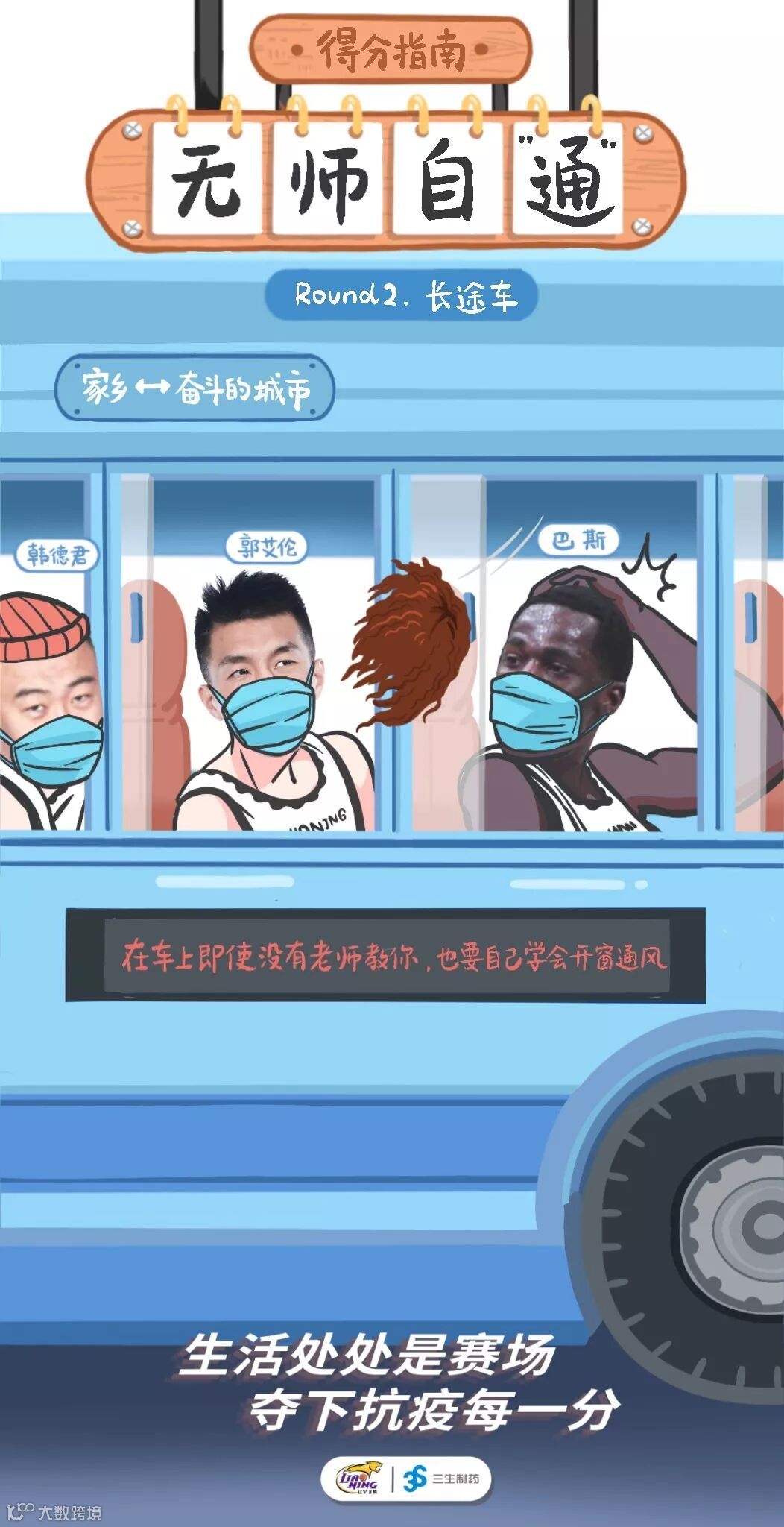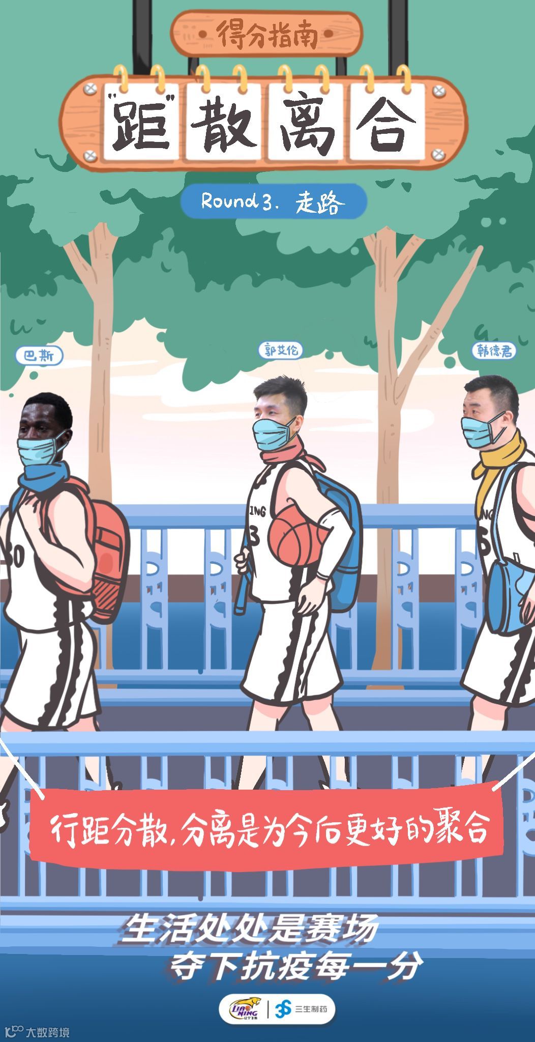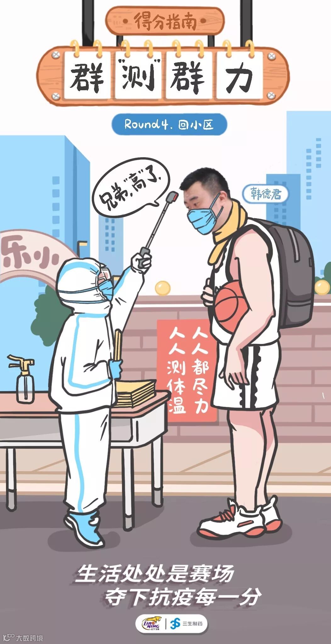 三生制药联合辽宁沈阳三生飞豹篮球俱乐部推出的抗疫复工“得分指南”,教你变成抗疫得分王。看看大侄子(郭艾伦)教我们如何安全乘坐飞机,再看看功夫熊猫(韩德君)告诉我们回小区的诸多注意事项,赛场不止在球场,生活也处处是赛场,做好自己,才能拿下抗疫比赛的每一关键分!