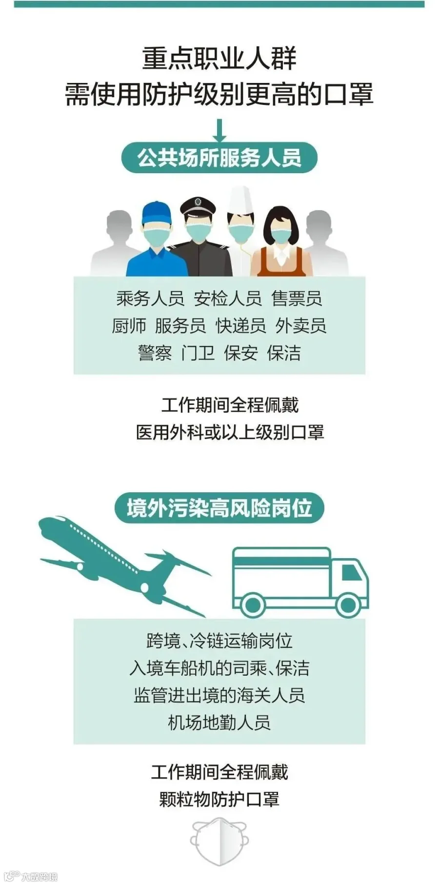 一般接触人员:全程戴医用外科口罩或以上防护级别口罩