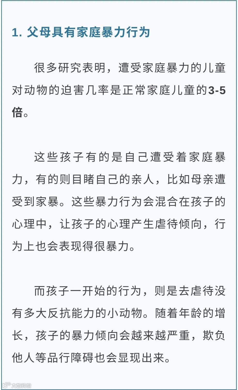 更可怕的是,一般在孩子出现此类征兆时,有的父母往往会做出选择性忽略,比如虐待小动物的行为。