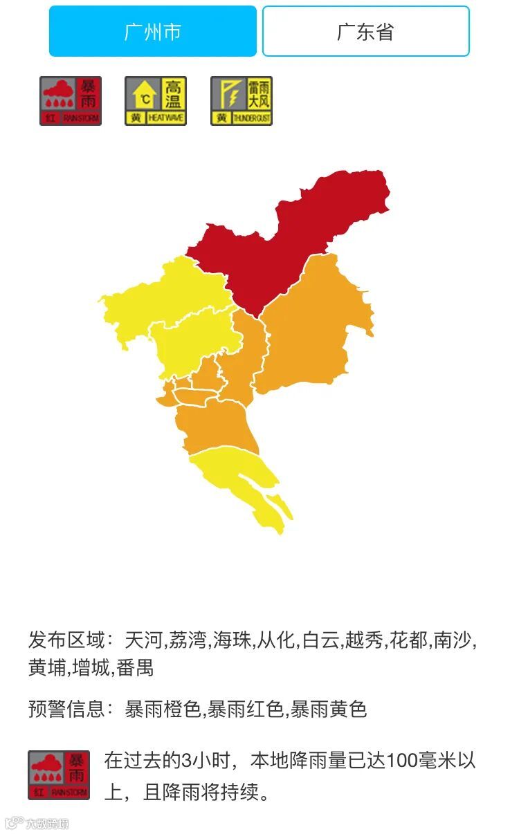 从化区更是发布了暴雨红色预警