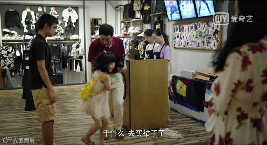 商场门口,朱晶晶踩到了朱朝阳的新鞋后装作没事跑开,朝阳脸上的无奈和难过显露无疑。