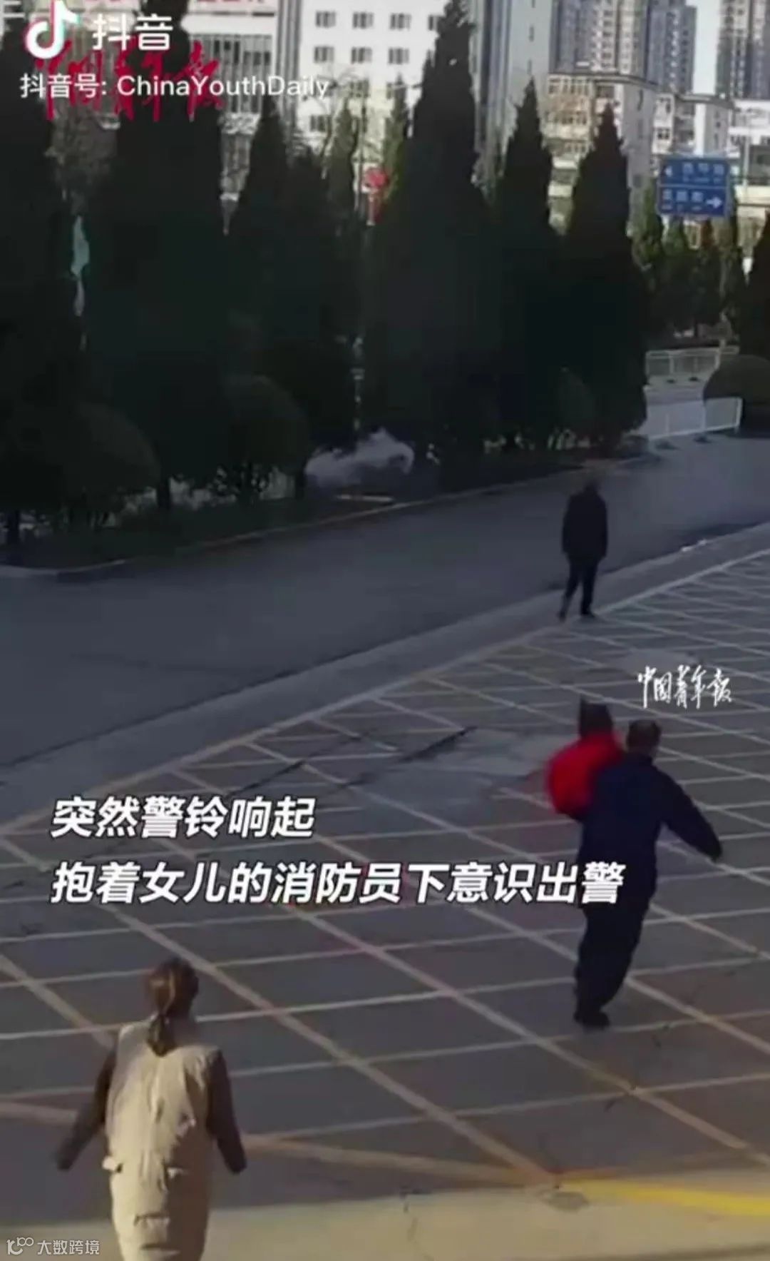 消防员爸爸听到后立即放下孩子
