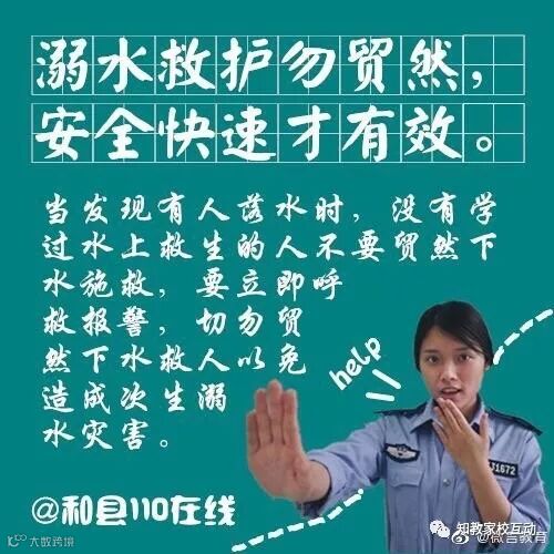 知教家校互动夏天到啦,酷热难耐的夏天能下水游个泳当然是极好的,但是凉爽的海滨、河流给我们带来欢乐享受之余,也潜藏着危机。小伙伴们看过来,这里有一份朗朗上口的夏日防溺水手册,快快戳图学起来↓↓↓
