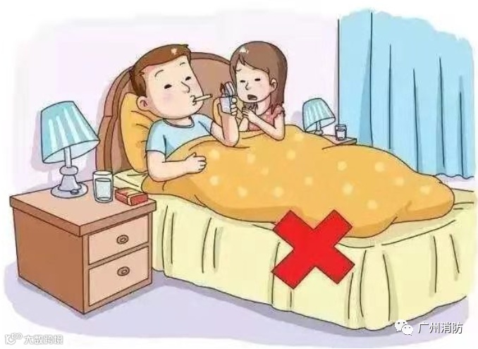 严禁在床上或沙发上吸烟,烟头一旦掉落在被褥、蚊帐、衣服或沙发上,极易引发火灾;如果将烟头、未熄灭的火柴随便一扔,恰好扔到了纸篓、柴草堆、衣物等物品上,火灾也在所难免。