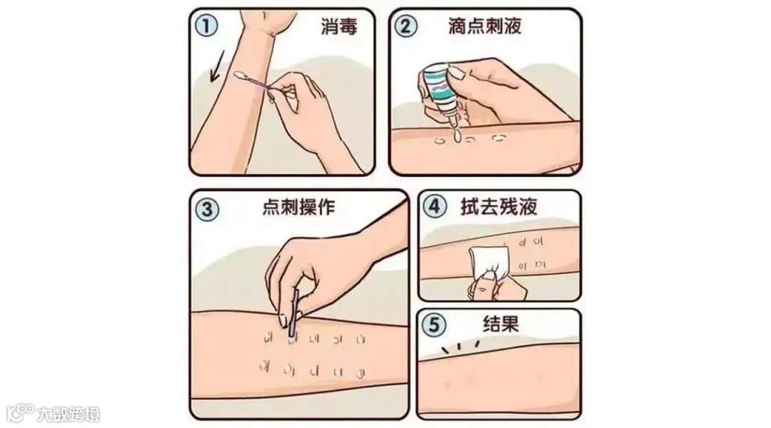 这是最常用的皮肤过敏原的点刺试验,它需要让过敏原进入我们的体内,然后从过敏的反应来看,我们是对哪种物质有反应、反应程度是多少。