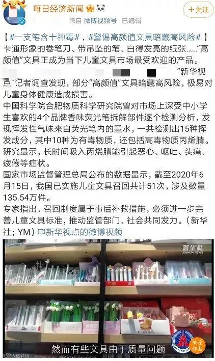 但这些文具光鲜亮丽的背后,“安全值”问题却一直令人堪忧。