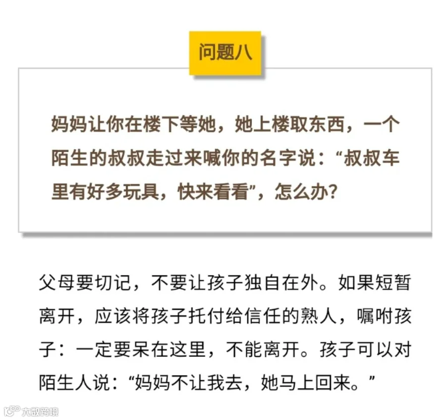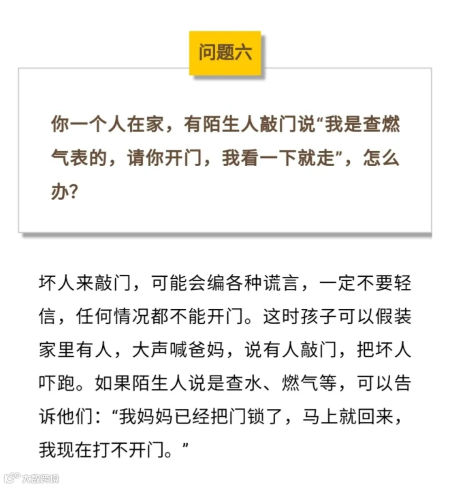 中国关工委教育顾问蔡景昆总结出10道“安全知识题”,各位家长一定要考考孩子,让孩子学会保护自己,遇到突发事件时正确应对~