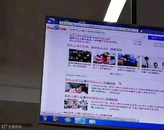 前段时间有则热搜,某高校高数老师苦于学生不听课,上课时用电脑搜索“大学生上课不听讲老师怎么办”,被与电脑连接的屏幕展现给学生。