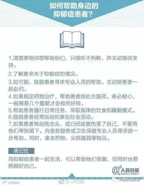 来自外界的关爱是抑郁症患者战胜抑郁的主因呼吁大家关爱患者使他们有信心有勇气去战胜自己的病!