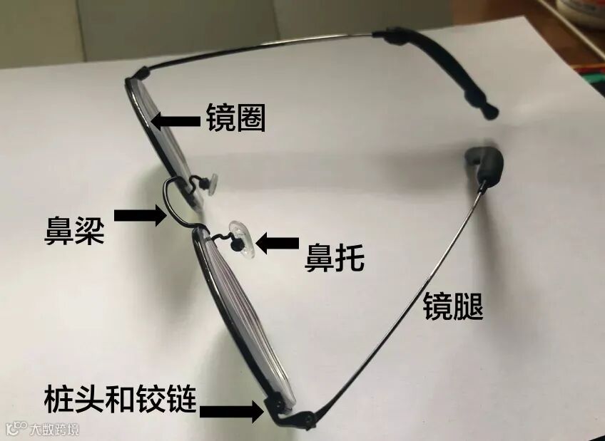 为了弄清楚孩子的眼镜为什么会歪,我们需要先来了解一下眼镜框的构成。