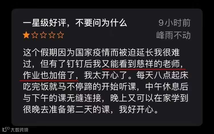 由于小学生不爽被占用寒假时间上网课,于是集体出征,寸草不生,疯狂给钉钉打一星。
