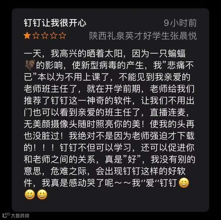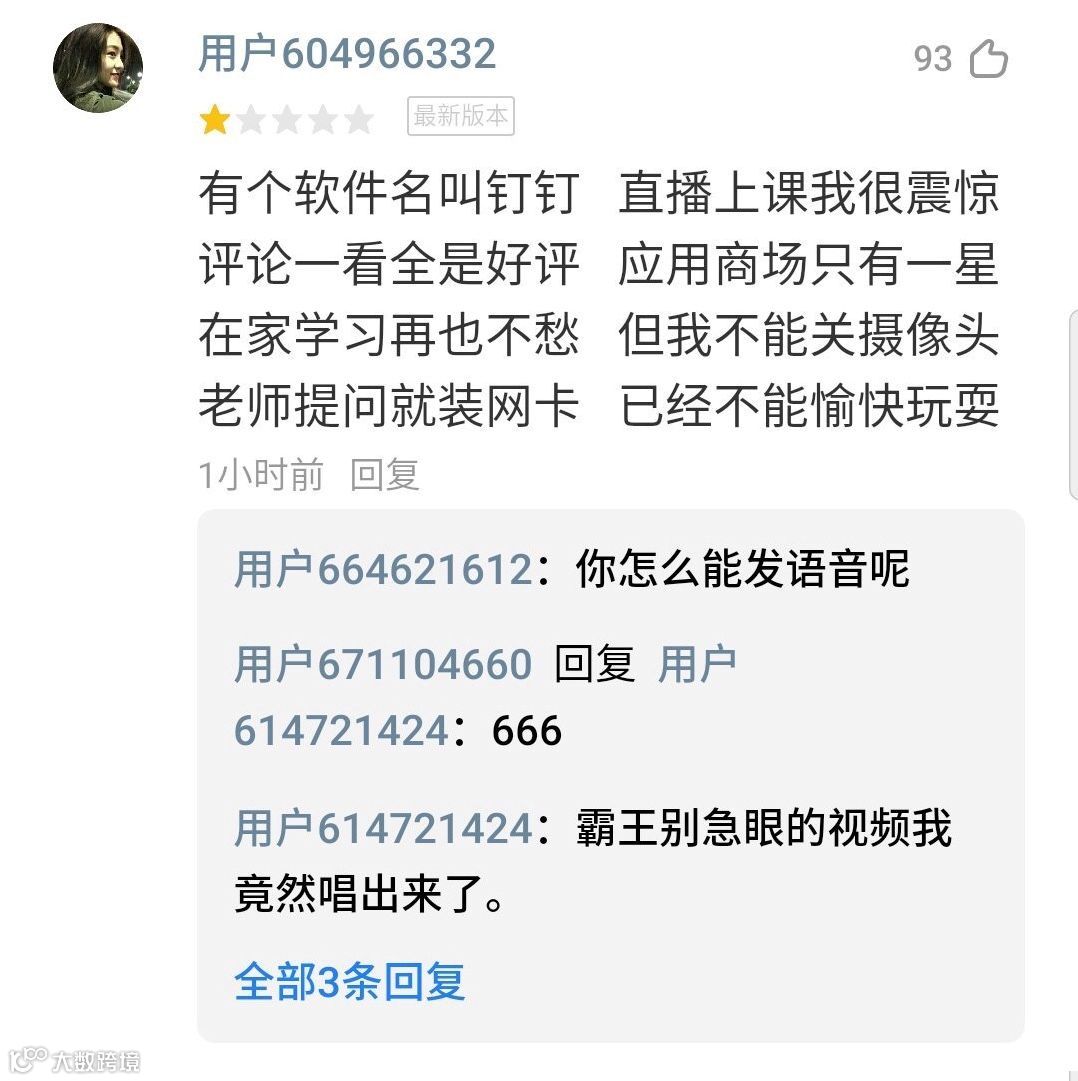 钉钉被教育部选中作为给小学生上网课的平台,本以为自己因为业务过硬得到官方认可是2020上天选中的宠鹅,万万没想到11亿次下载,整体评分却只有一星。