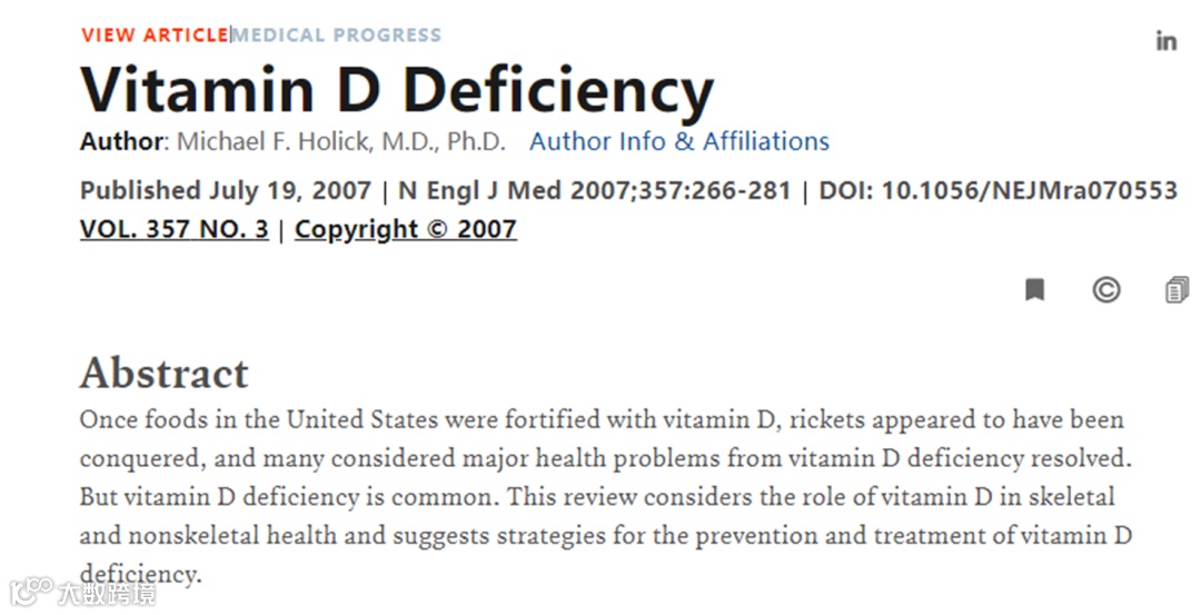 1.Holick, M. F. (2007). Vitamin D deficiency. New England Journal of Medicine, 357(3), 266-281.