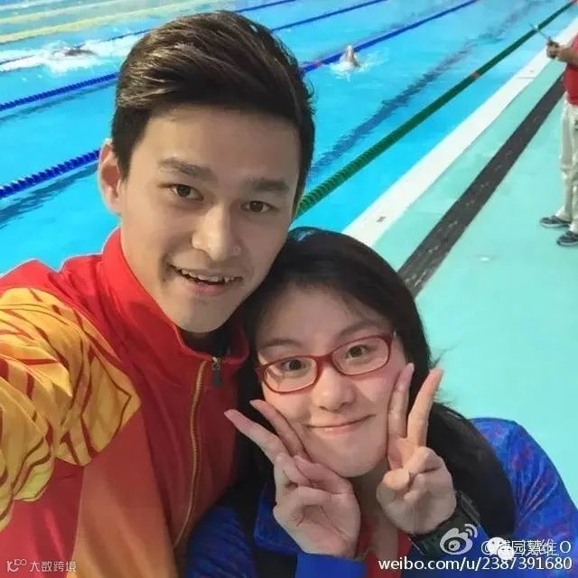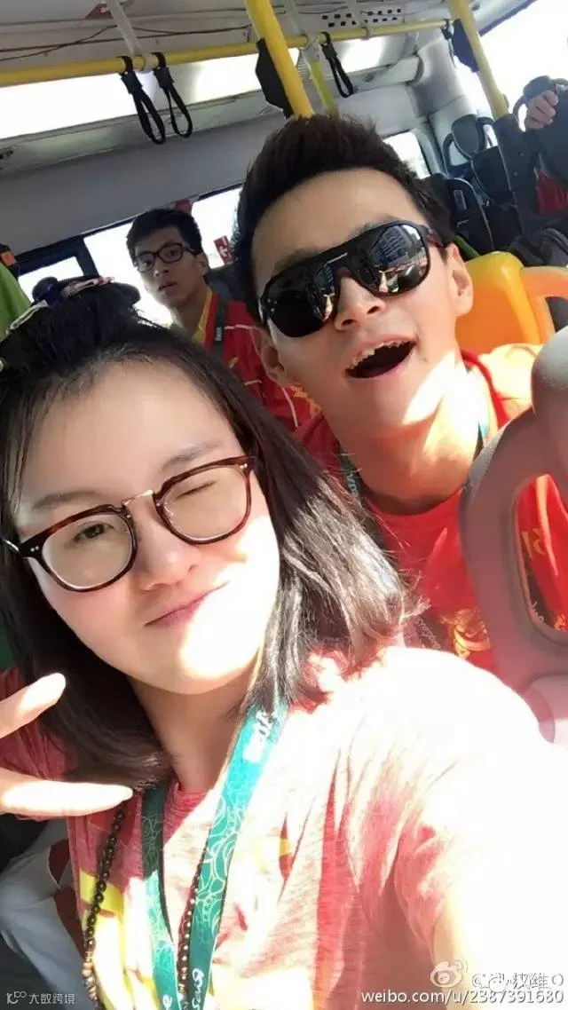 傅园慧经常在微博上po出与孙杨哥哥的有爱合影↓