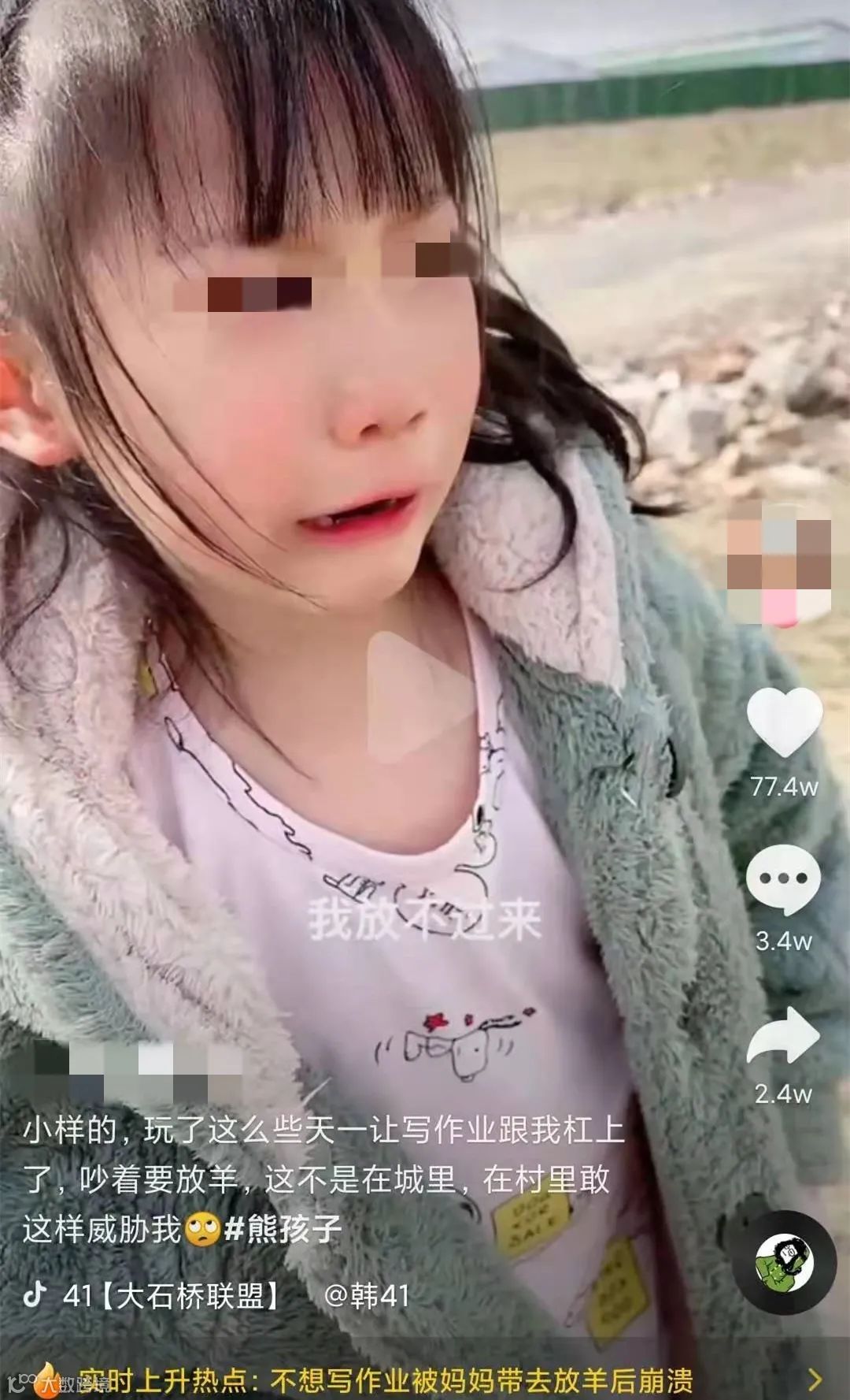 孩子哭着说自己只想放一只