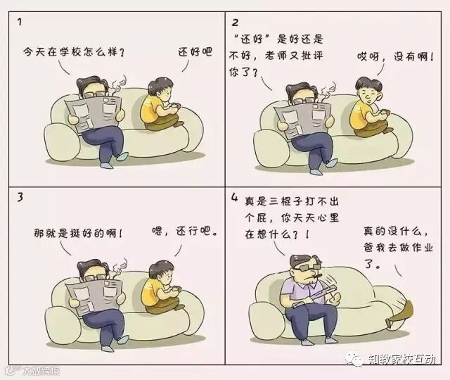 爸爸:“还好”是好还是不好,老师不会又批评你了吧?