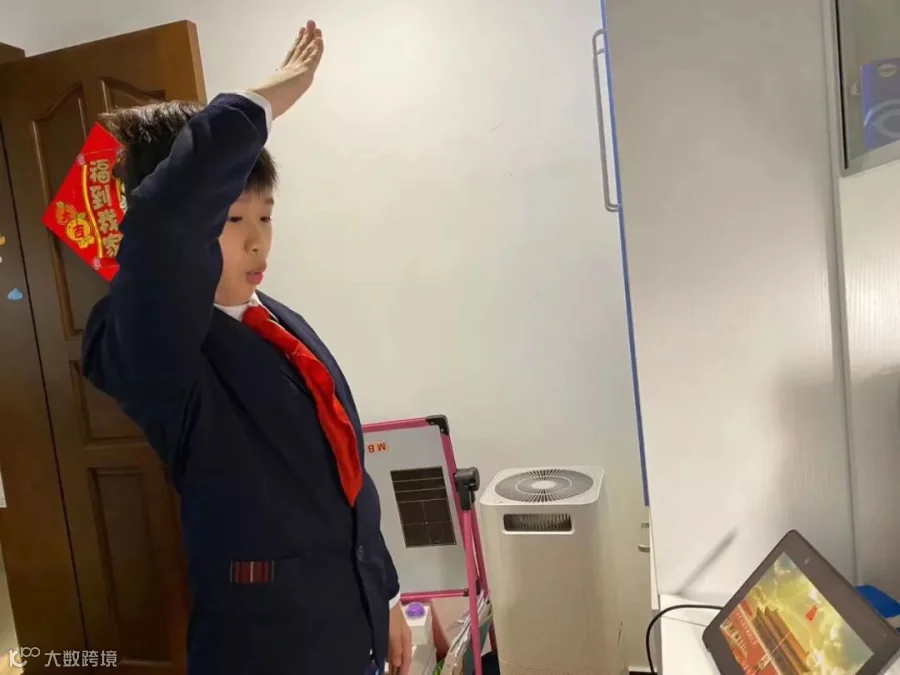众多小学的第一课都是升旗仪式。有的区以直播的方式,组织全区师生参加升旗仪式。期盼开课的孩子们早早地起床,佩戴好红领巾,站立在电脑前。国歌声响起,孩子们激情地唱起了国歌。