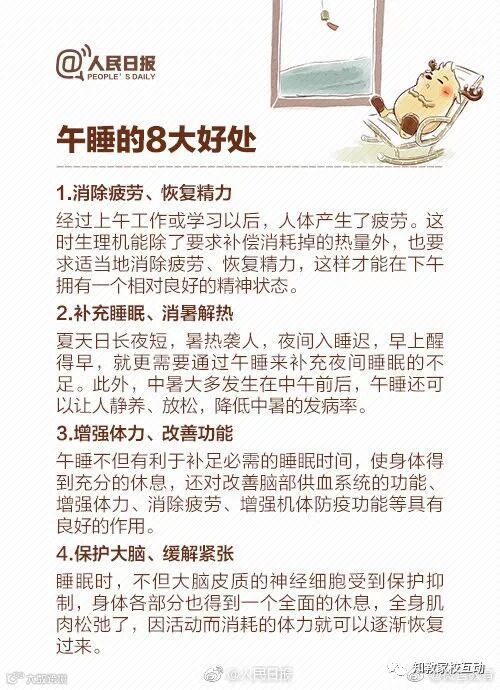 知教家校互动“春困秋乏夏打盹”,夏季炎热,同学和老师们经过一上午的学习和工作后往往会在中午时分犯困,那么应该如何午休才最有效?戳图,一起了解下科学午睡攻略↓↓